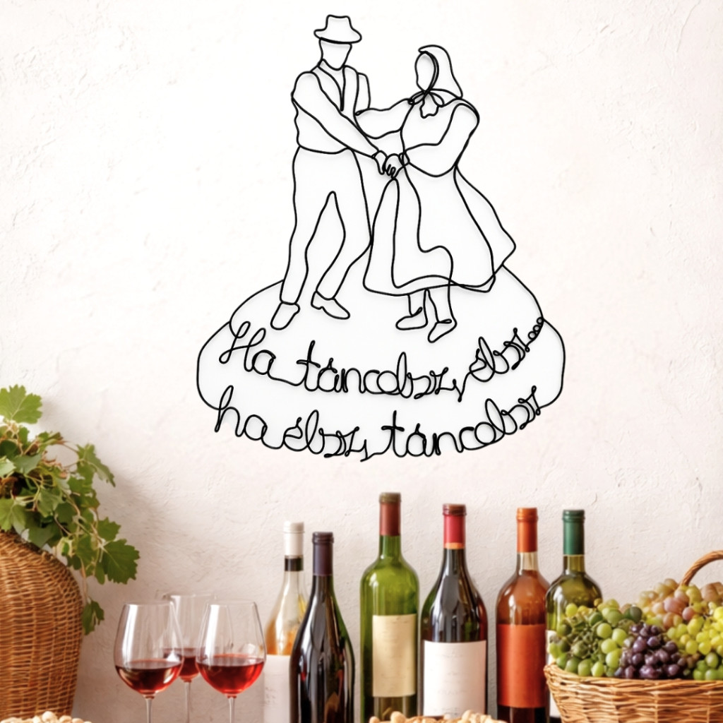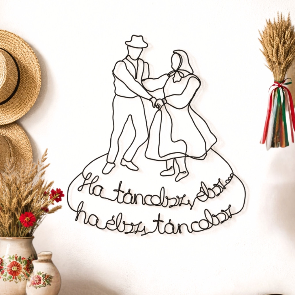 Ez az alkotásom a magyar néptánc szenvedélyét és szabadságát viszi otthonodba. A fekete drót eleganciája bármilyen stílusú lakásban jól mutat, legyen szó modern nappaliról vagy egy rusztikus hangulatú parasztházról.