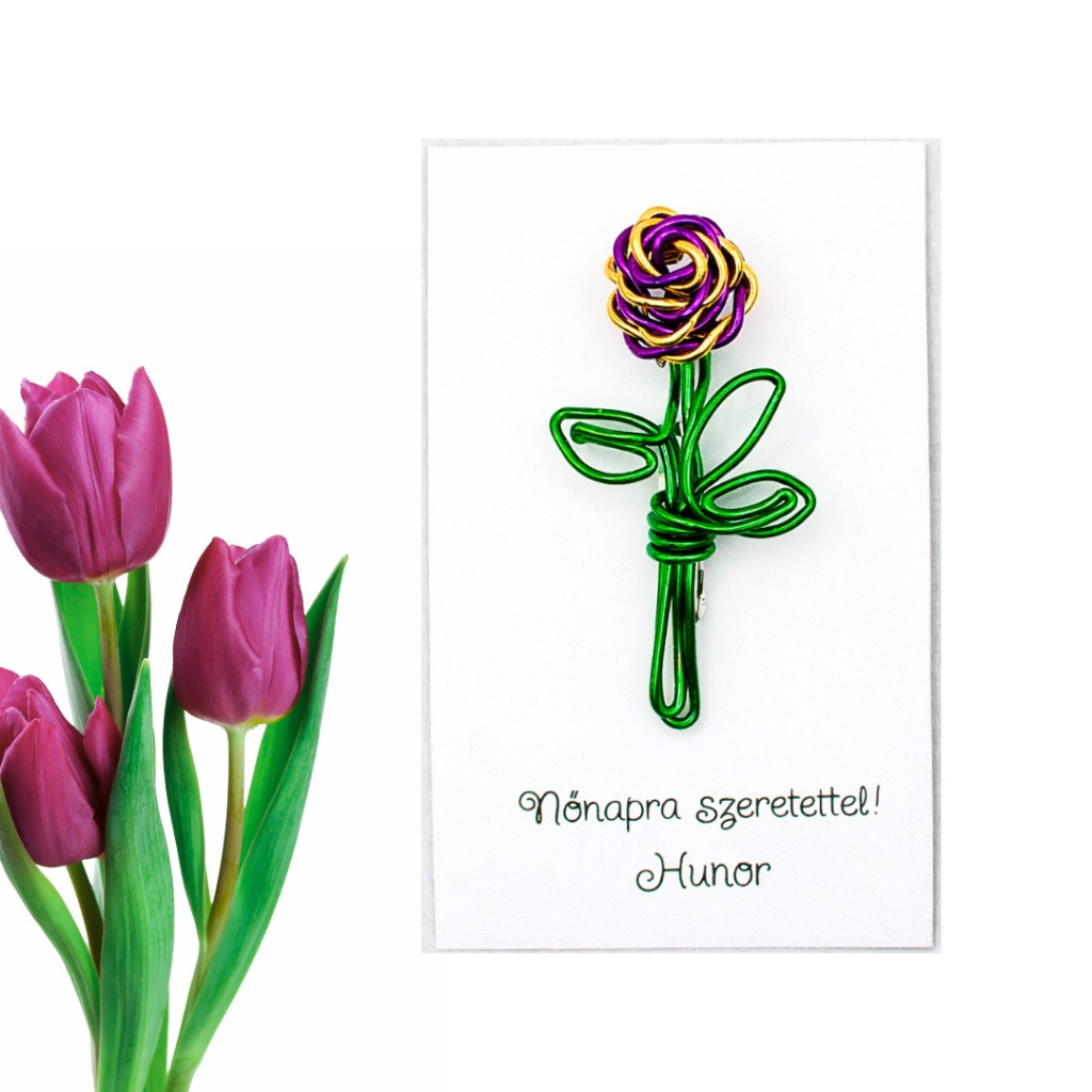 A nőnapi ajándék kiválasztásánál sokan keresnek olyan meglepetést, amely kedves, mégis praktikus, személyes, de nem túlzó. Egy kézzel készített, drótból formált virágos bross pontosan ezt az egyensúlyt teremti meg.